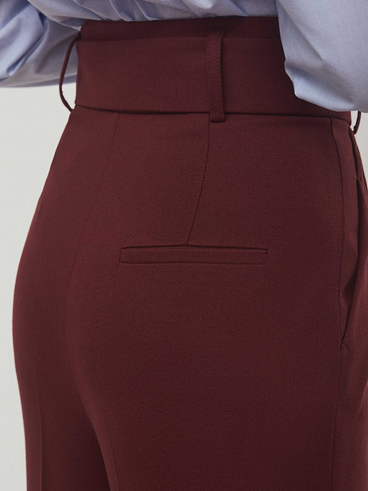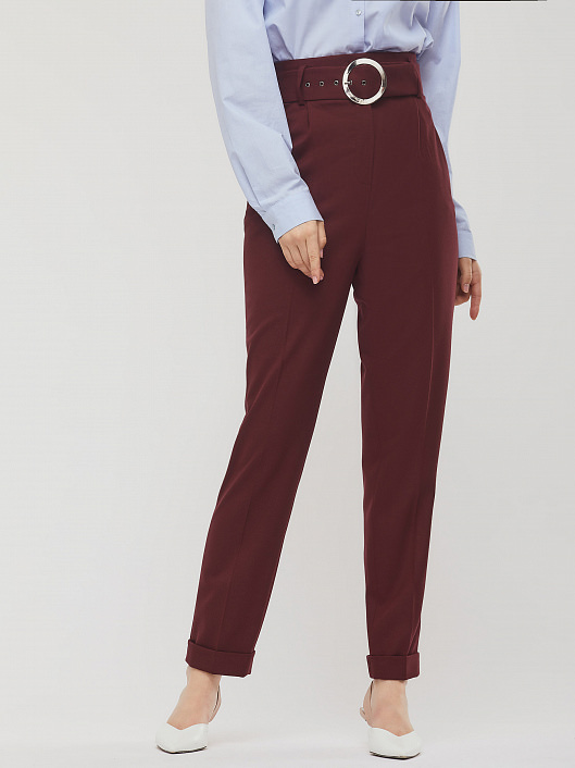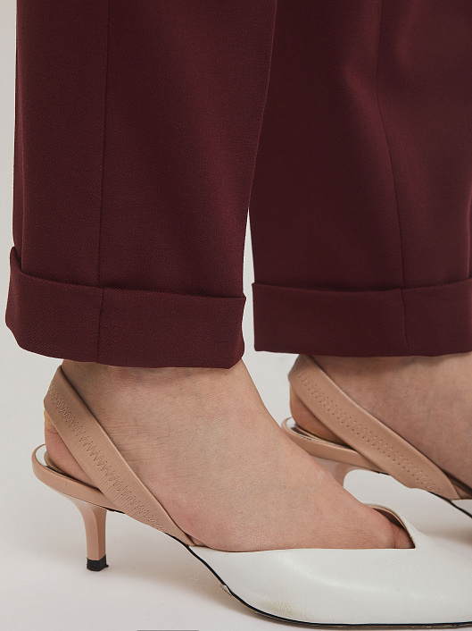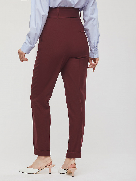 Зауженные брюки высокой посадки с зашитыми отворотами снизу.