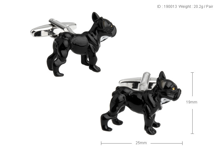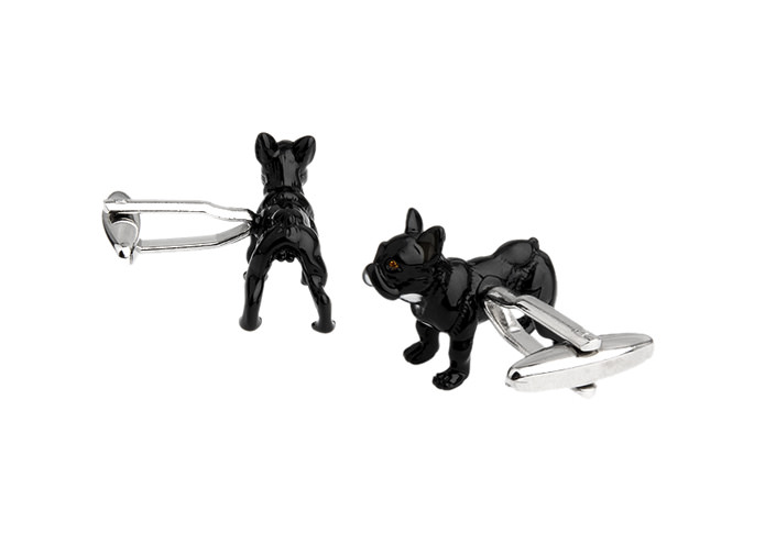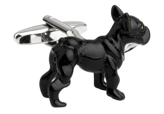 Запонки французский бульдог. Материал основы: сплав металла, покрытый родием.