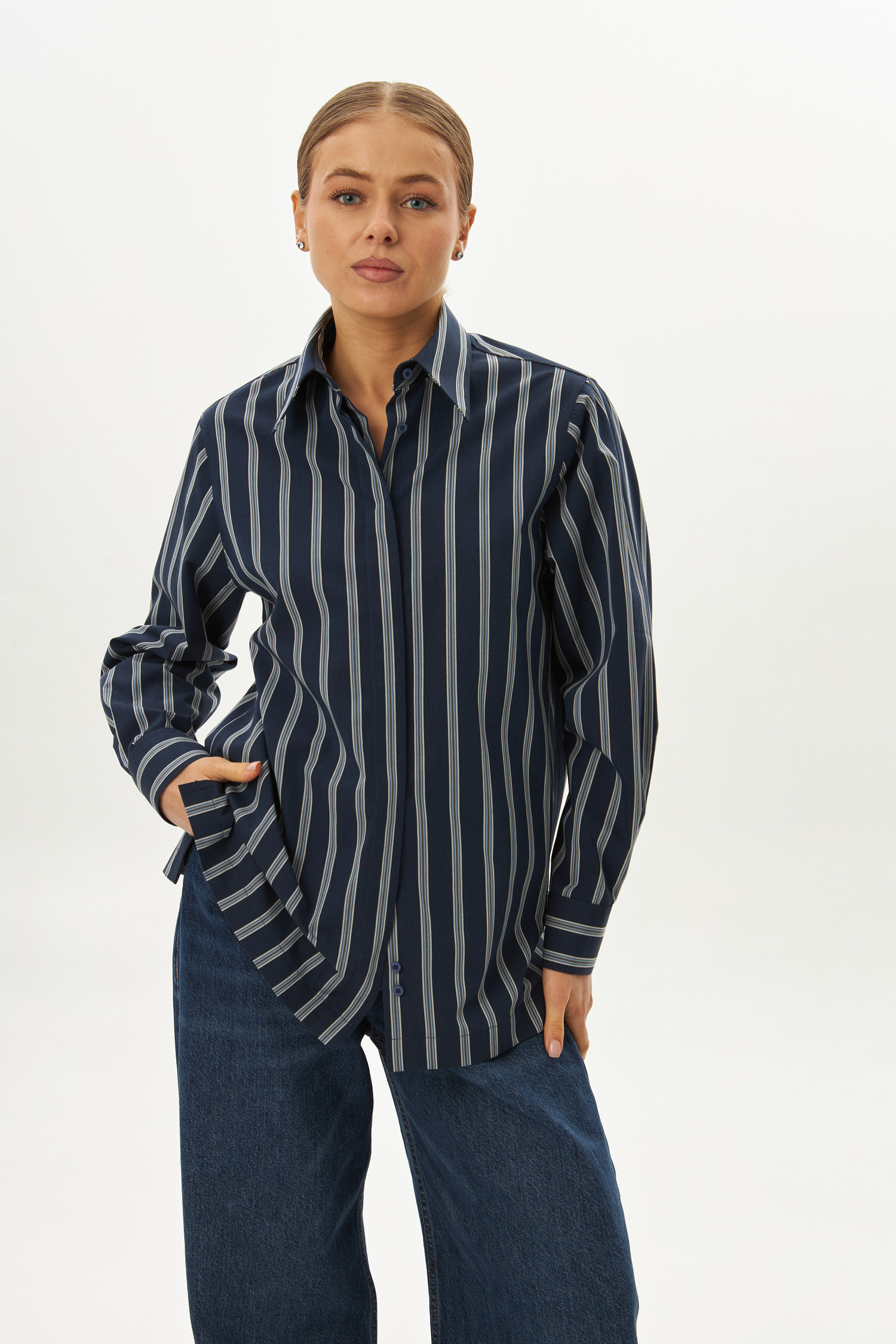 Синяя в полоску, 100% хлопок