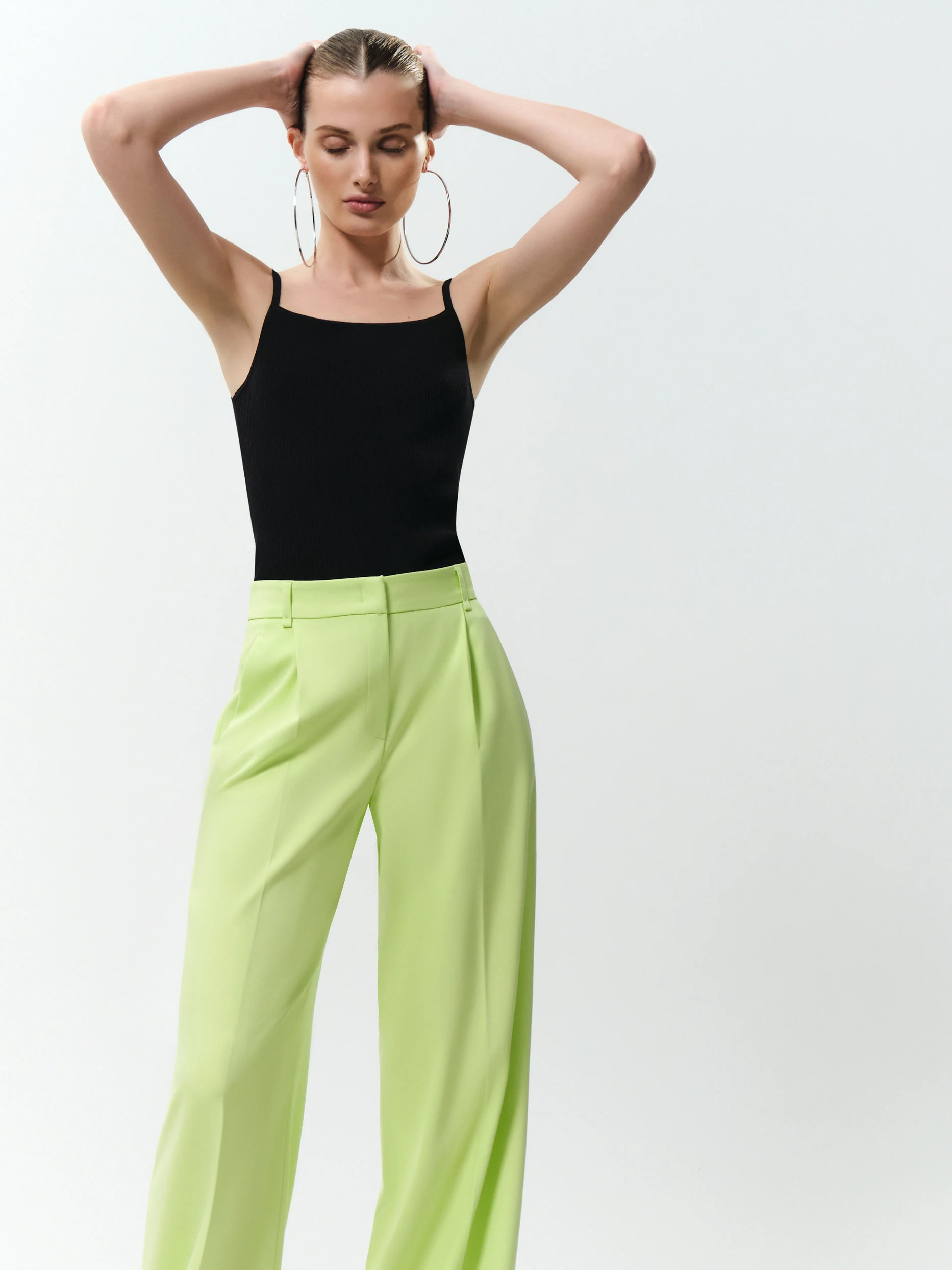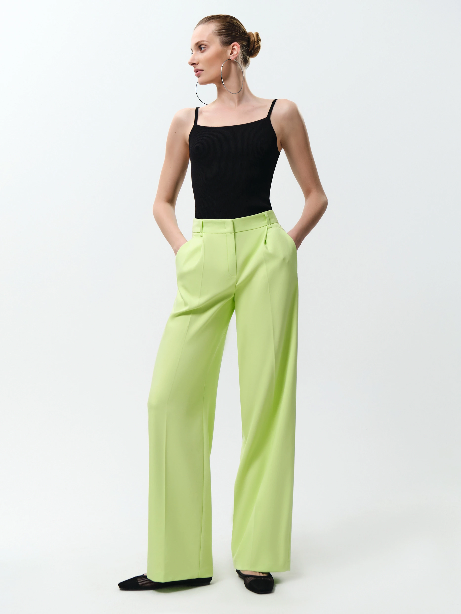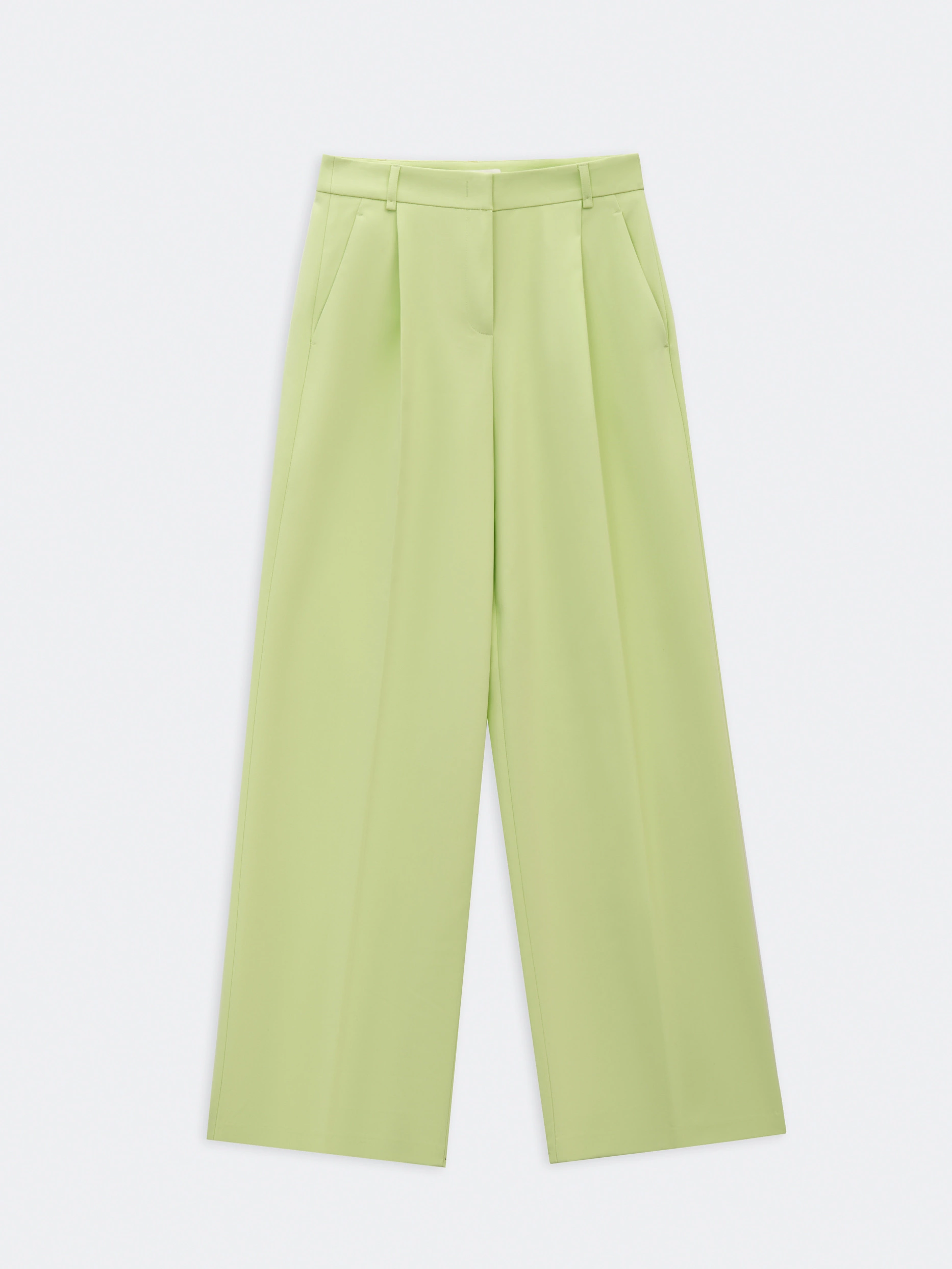 Классические брюки со стрелками с легкостью перенесут из рабочего кабинета на вечеринку или в парк, за счет летней расцветки. Струящаяся ткань и защипы делают эту модель актуальной и для праздничного торжества. Дополните брюки базовым верхом и завершите образ аксессуарами в трендах сезона.