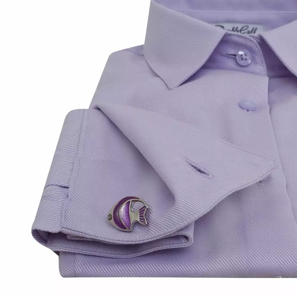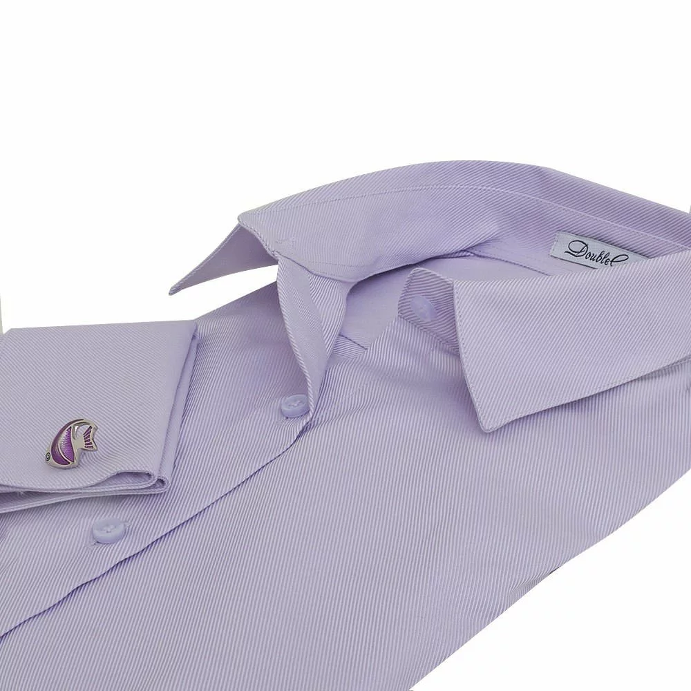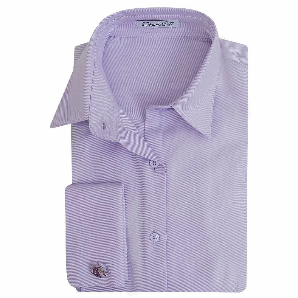 мягкой и шелковистой. Ткань имеет отличительный шелковистый внешний вид и очень мягкая на ощупь Приталенная женская рубашка под запонки фиолетовая Non-Iron, текстура twill - в рубчик.