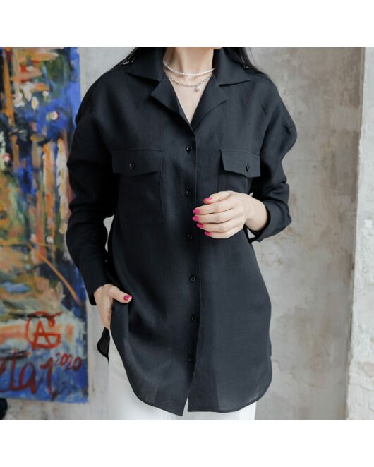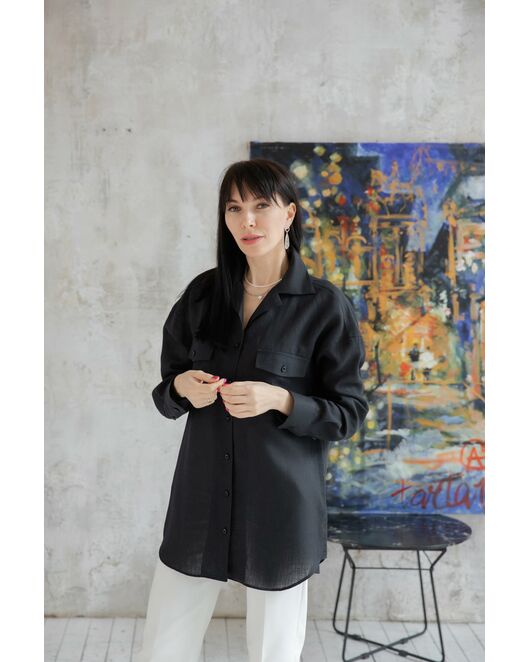 Низ у рубашки фигурный, спина длиннее чем спереди, на спине декоративный зажим, за счет этого рубашка не висит балахоном.